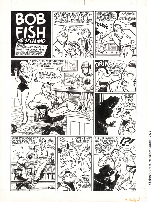 Yves Chaland est l’un des auteurs les plus marquants des années 1980, se démarquant par l’élégance de son style et l’intelligence de son dessin. Il est, avec Joost Swarte et Floc’h & Rivière, l’un des fondateurs de la Ligne claire, un mouvement post-moderne qui s’inspire des classiques de la bande dessinée. Chaland joue avec les codes graphiques des années 1950, mêlant de façon irréaliste la pin-up potiche Fifties, le scaphandre de Cousteau, les masques de la colonie belge du Congo, les consciences angéliques et diaboliques d’Hergé, et un exemplaire de Noir & Blanc, la fameuse revue traitant de « la vie des célébrités ». Le tout est dessiné d’un pinceau vif et ample, bien nourri d’encre, à la manière de Jijé, de Franquin et de Will Eisner qui furent ses maîtres. Avec à peine une dizaine d’albums, l’influence de Chaland est profonde et internationale.
