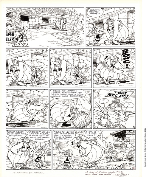 Le Cadeau de César, est une année politique difficile, marquée par la victoire de Valéry Giscard d'Estaing face à François Mitterrand, après un second tour très serré. Les auteurs sont donc dans l’actualité avec cet album. Mais ce qui reste intemporel, c’est l’amitié inébranlable entre Obélix et Astérix, brouillés dans cet épisode pour des raisons aussi bien sentimentales que… politiques. Alors que l’on célèbre le centenaire de René Goscinny (il est né en 1926), il n’est pas inutile de souligner l’excellence d’un script mis en images par Albert Uderzo, un génie du dessin dont l’amitié pour son scénariste a été aussi indéfectible que celle de leurs héros. Si le sous-texte peut être compris finement par les adultes, la justesse des traits et des attitudes d’Uderzo séduit aussi les plus jeunes, ce qui rend cette page aussi transgénérationnelle qu’universelle.