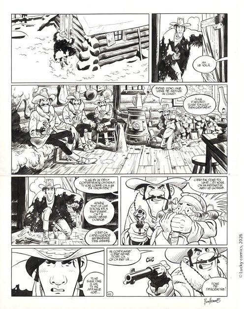 Lucky Luke (vu par...), dont il signe le scénario et le dessin. Grand admirateur du créateur Morris, Matthieu Bonhomme a su apporter un nouveau regard à cet univers culte par son dessin d’une grande élégance et sa remarquable technique de mise en couleurs à l'aquarelle et à la gouache.